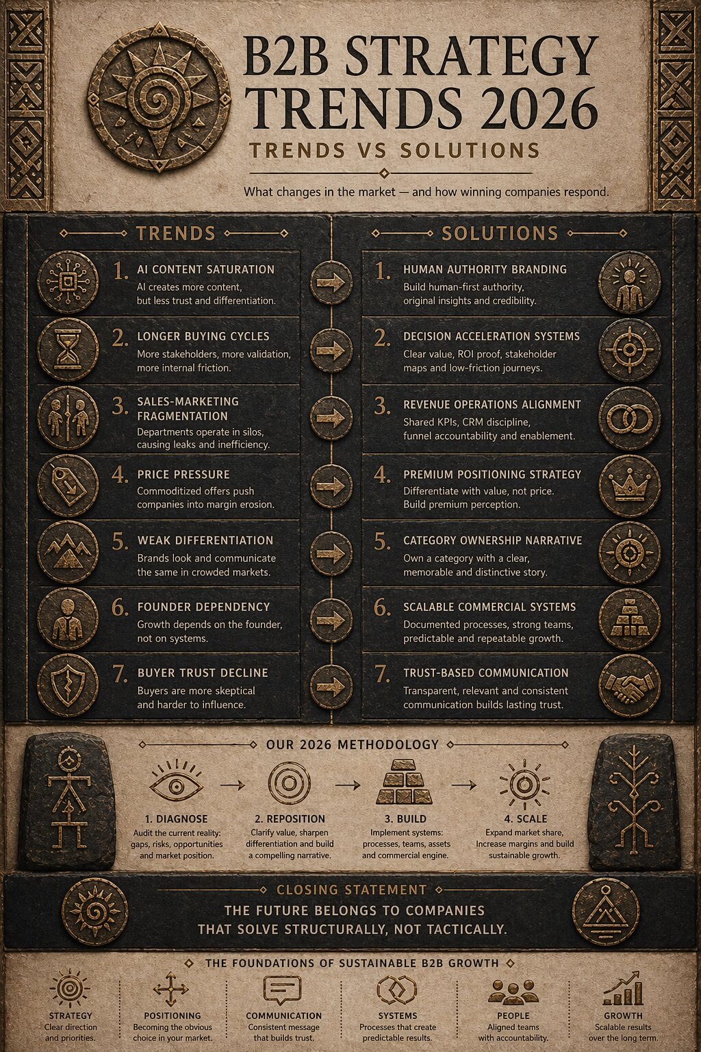 In 2026, B2B markets are no longer shaped by product quality alone → Most categories already offer acceptable quality, similar pricing and comparable delivery capabilities. The new battlefield is different → clarity, trust, systems, positioning and commercial execution.